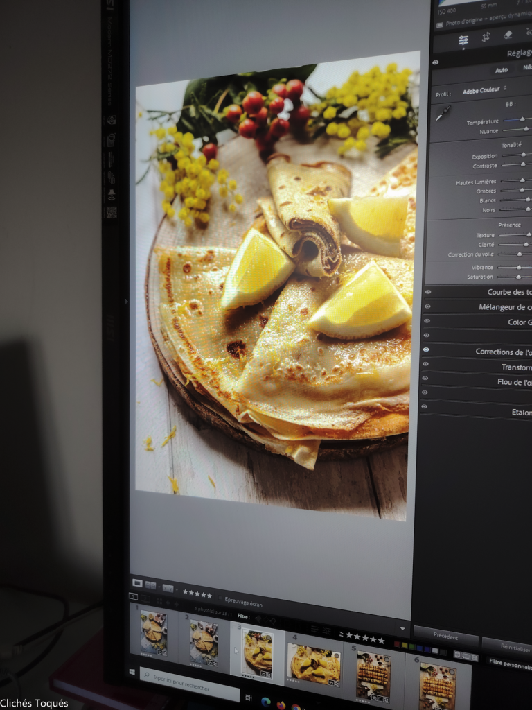 - Les « RETOUCHES » sur un logiciel spécialisé : ce n’est pas tricher mais sublimer vos images en retravaillant les ombres et la lumière, les couleurs et les textures, puis d’effacer toutes les petites imperfections (miettes, poussières…), un travail minutieux qui prend du temps,